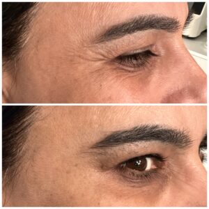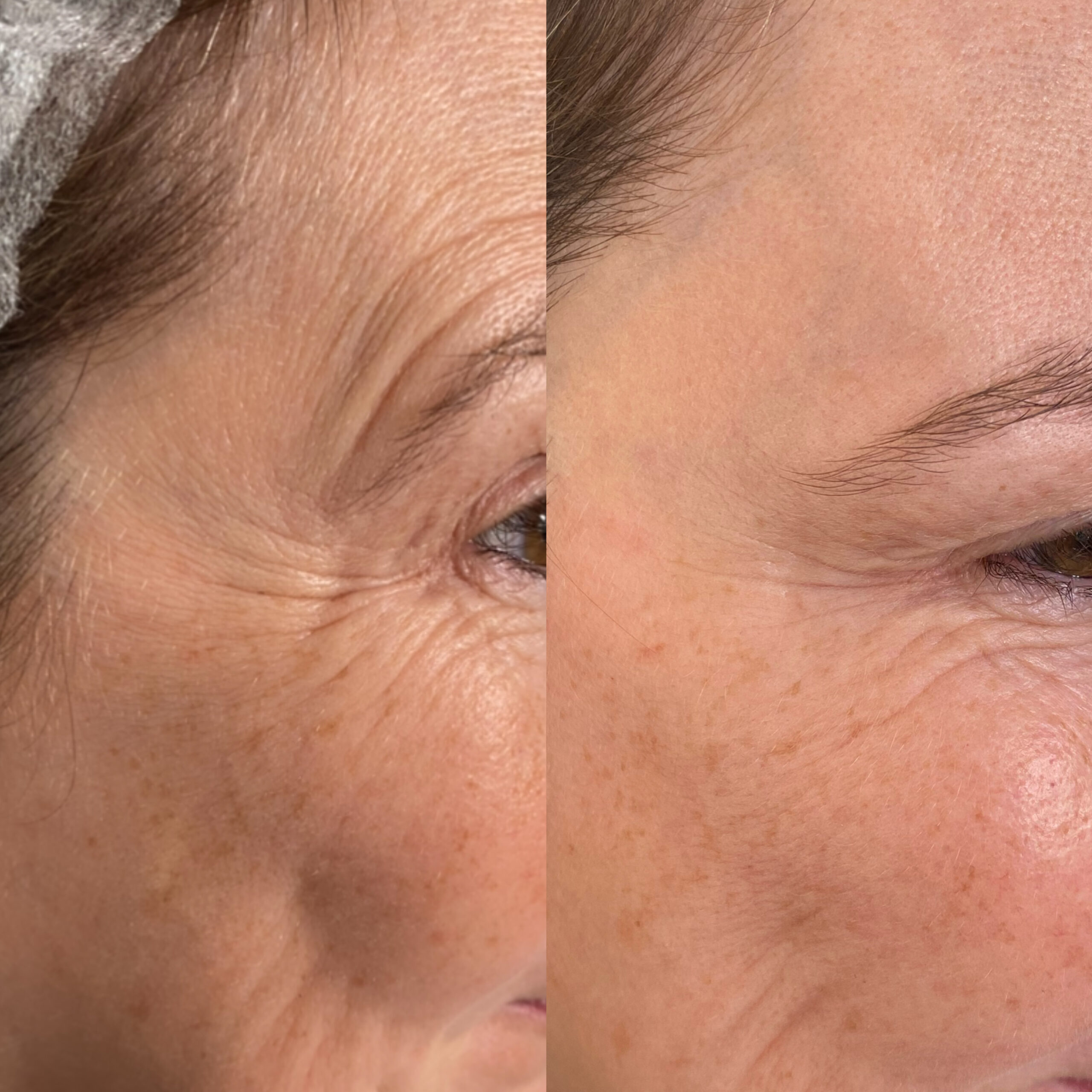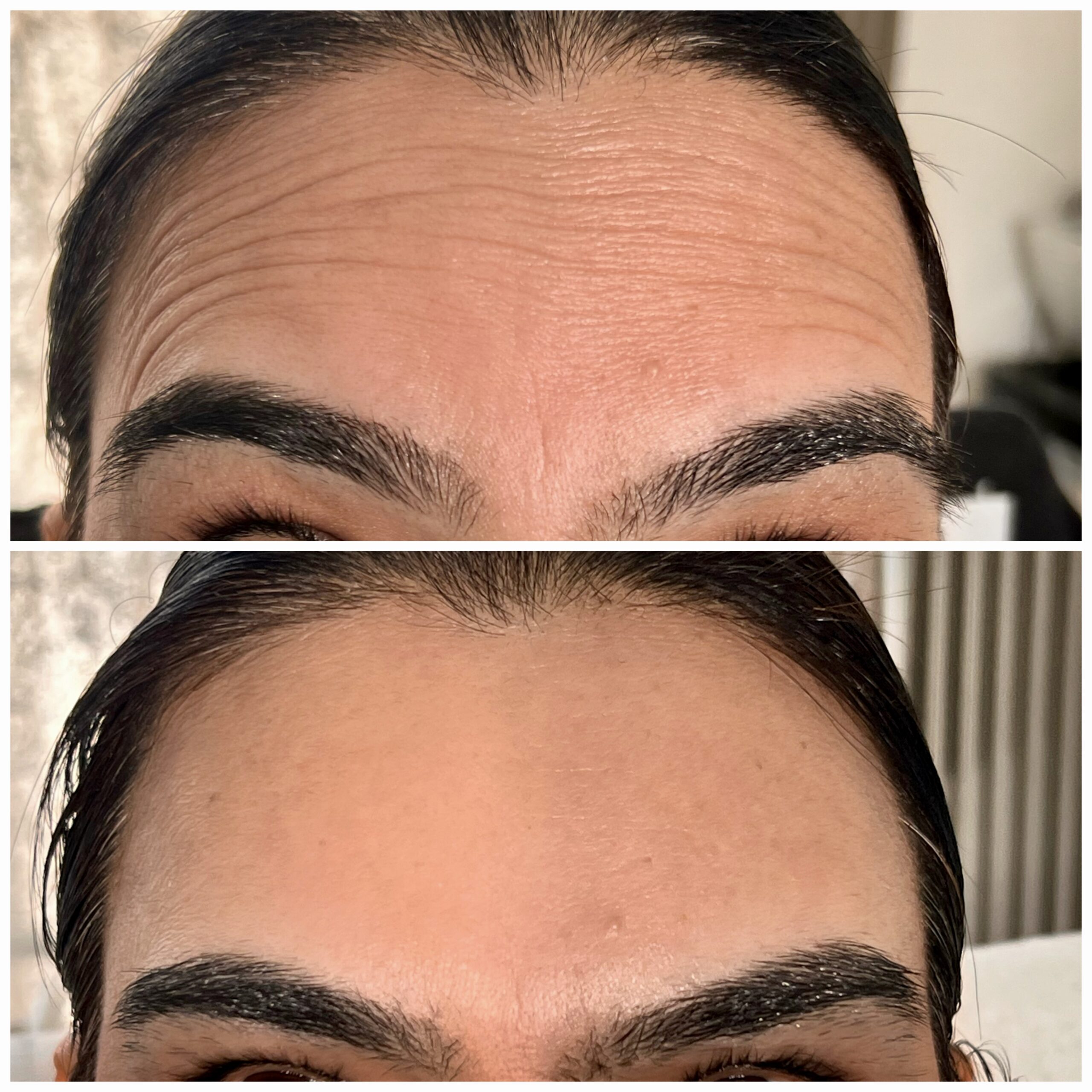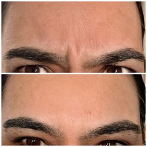 The areas of the face treated is frown lines, forehead lines, bunny lines (lines in the nose) crow’s feet, chin dimples) smokers line around the mouth, especially where the edges are downturned.