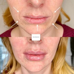 The method used depends on which area is being treated. The safest method is always chosen whether it be using injections or a blunt ended instrument called cannula, as clients safety and wellbeing is paramount. Before our clients are injected, we use a award winning vein detection device used in the healthcare sector called Accuvein to map out peripheral veins on the skin’s surface. Numbing cream is applied to treated area 20 minutes before the treatment to minimise discomfort. In some cases, the client may require multiple sittings to achieve the desired result.