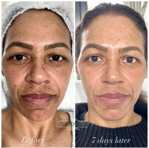 Once the peeling is finished, you’ll notice a clearer and more glowing complexion. You will also see continuous improvements over time. Just make sure to follow the proper aftercare, such as avoiding sun exposure as much as possible during the peeling phase and using sunscreen with SPF 30 or higher daily. You can return to work and most normal activities immediately.